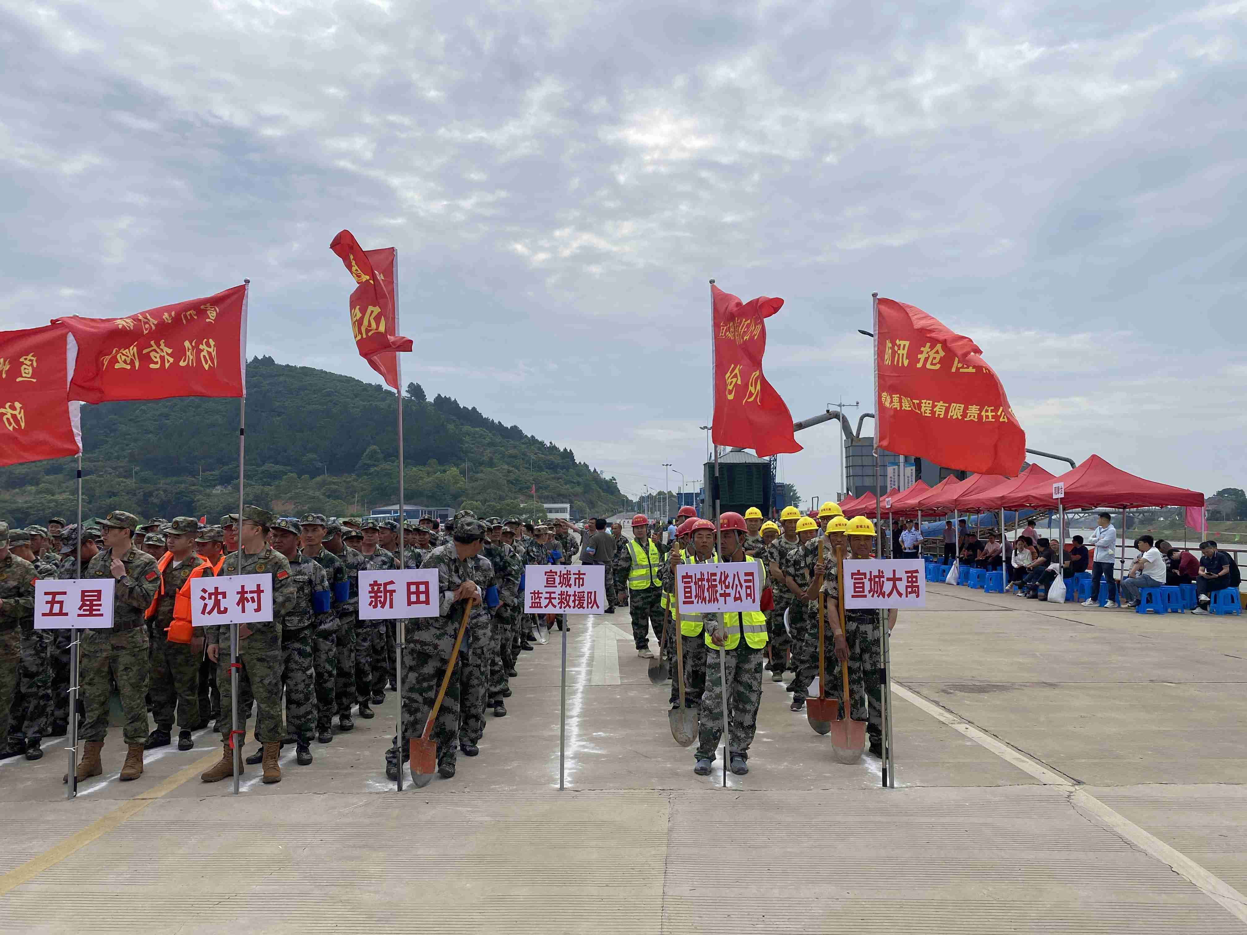 5月22日上午,根据市、区防指的统一部署,宣城市暨宣州区2024年防汛抢险实战演练活动在朱桥乡北山港口举行。演练内容包括打桩、加子埂、反滤围井、开沟导渗、水下抢险、水上编队航行和人员搜救转移演练。宣城大禹建设工程有限责任公司抢险队共8人参加反滤围井演练。